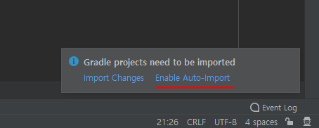 코드 작성이 끝나면 build.gradle에 변경이 있으면 나오는데