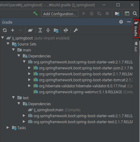 오른쪽 Gradle 탭을 클릭하여 확인합니다.
